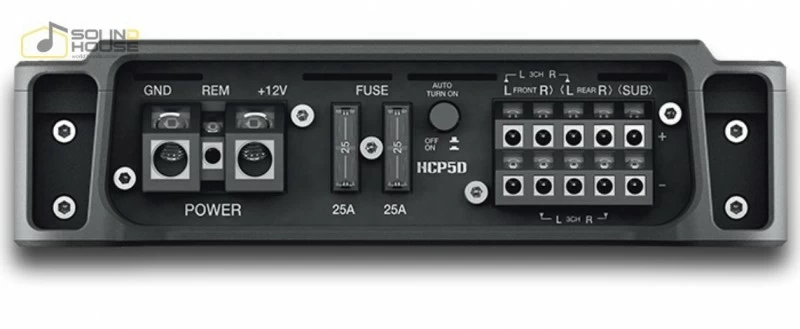 HERTZ HCP 5D este un amplificator pentru partea frontala + spate + subwoofer , cu cinci canale de clasa D. Dispune de o gama larga de intrari pentru a obtine cea mai buna configuratie cu fiecare sursa audio auto. HCP 5 D este potrivit într-un sistem cu cinci canale cu subwoofer, într-un sistem frontal +spate + sub- cu ajutorul unor filtre încorporate în fata si spate care includ si un circuit de amplificare a intensitatii bassului si un filtru subsonic. Toate amplificatoarele Hertz Compact Power sunt asamblate cu componente de înalta calitate si dispun de un sistem încrucisat complet si oficial. Sistemul de disipare este optimizat deoarece caldura este transferata la radiator si apoi este disipata prin partile laterale ale amplificatorului pentru o racire eficienta . În plus, prin utilizarea accesoriului HRC (Hertz Remote Control), volumul subwooferului poate fi controlat de la distanta cu o precizie inalta.
