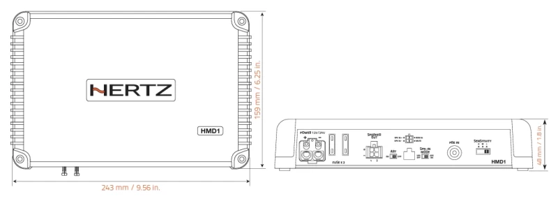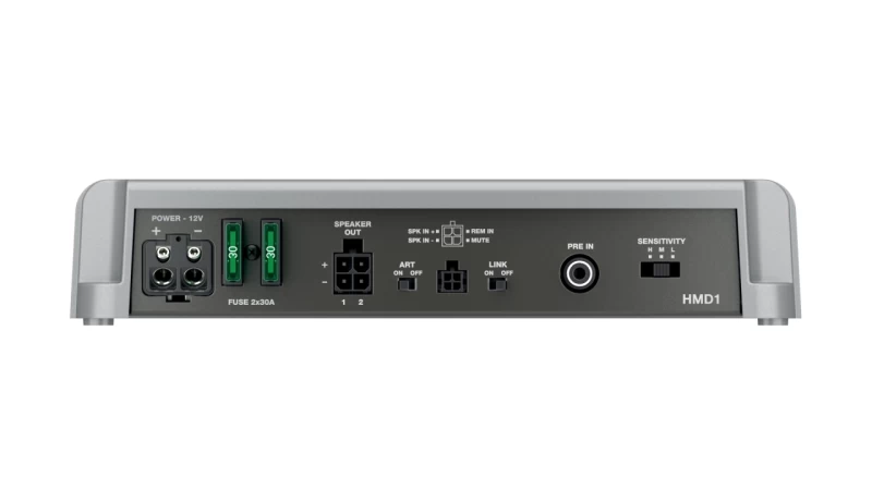 Amplificatorul monobloc HMD1 este solutia perfecta pentru a adauga unul sau mai multe subwoofere marin în cadrul sistemului, fiind extensia ideala de putere a HMD8 DSP. La 1 Ohm este stabil si poate furniza pâna la 1000 W de putere cu dimensiune extrem de compacta.