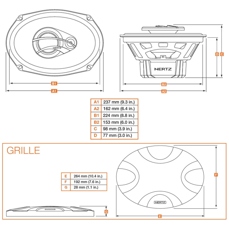 Descriere Difuzoare auto Hertz Dieci DCX 690.3, set coaxial 3 cai, 6×9 inch, 90W RMS, 4, 2 difuzoare