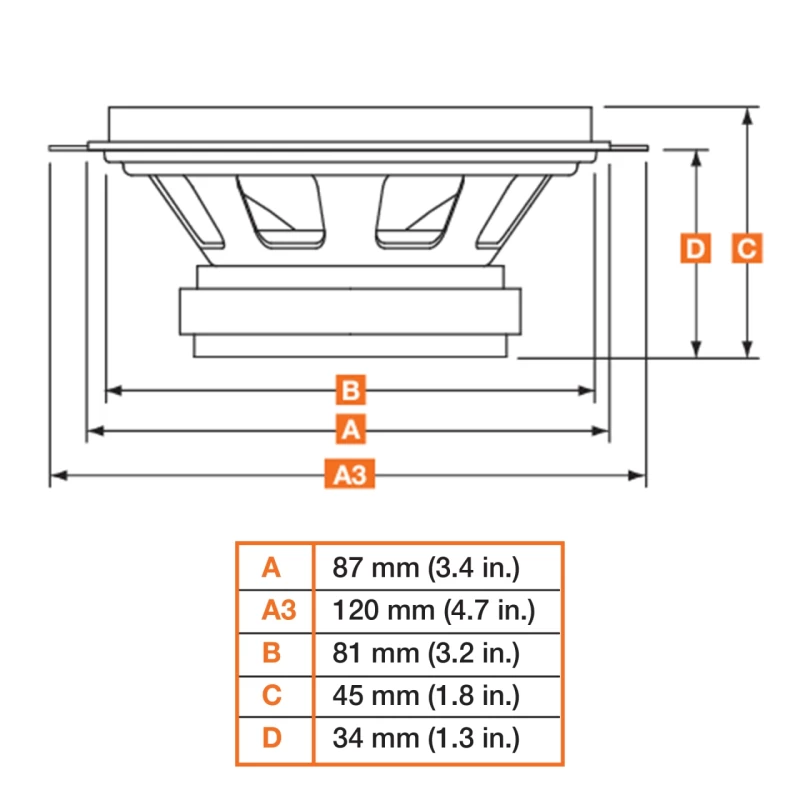 Dimensiune Woofer – 87 mm (3.4 inch)