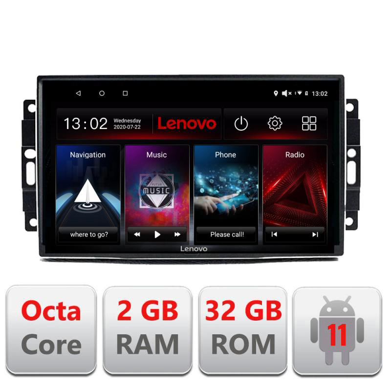 Descriere Navigatie dedicata Chrysler Jeep D-202 Lenovo Octa Core cu Android Radio Bluetooth Internet GPS WIFI DSP 2+32 GB 4G KIT-202+EDT