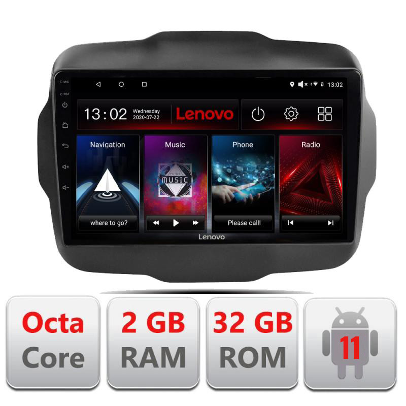 Descriere Navigatie dedicata Jeep Renegade 2015-2017 D-500 Lenovo Octa Core cu Android Radio Bluetooth Internet GPS WIFI DSP 2+32 GB 4G