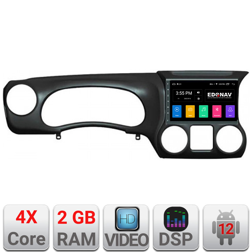 Cu sistem de operare Android 12, procesor 4xCore, Bluetooth încorporat, intrare USB, memorie internă 2GB, ecran tactil capacitiv, radio cu RDS, control comenzi volan, GPS și DSP integrate