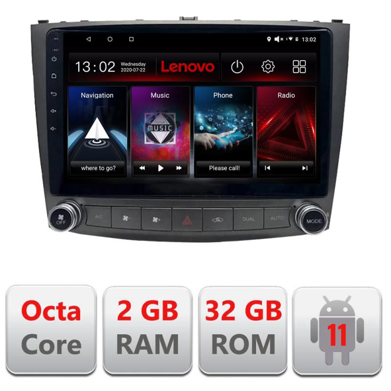 Descriere Navigatie dedicata Lexus IS 2005-2011 D- IS Lenovo Octa Core cu Android Radio Bluetooth Internet GPS WIFI DSP 2+32 GB 4G kit-