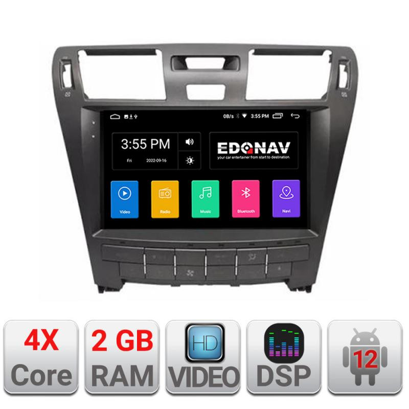 Cu sistem de operare Android 12, procesor 4xCore, Bluetooth încorporat, intrare USB, memorie internă 2GB, ecran tactil capacitiv, radio cu RDS, control comenzi volan, GPS și DSP integrate