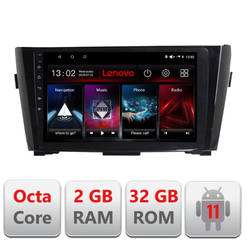 Descriere Navigatie dedicata Nissan Qashqai D-353 Lenovo Octa Core cu Android Radio Bluetooth Internet GPS WIFI DSP 2+32 GB 4G KIT-353+ED