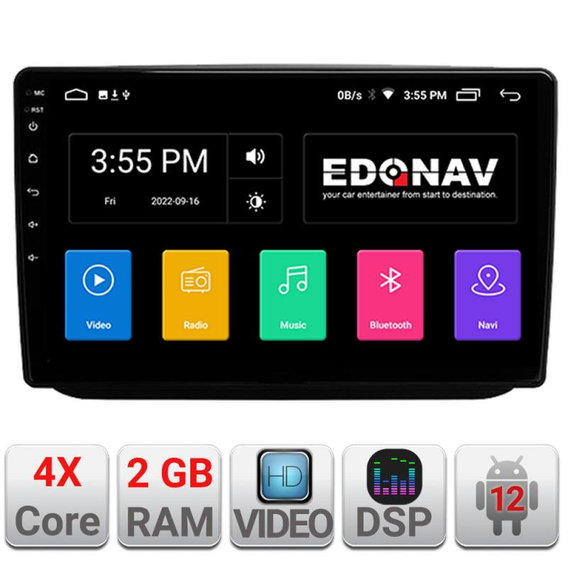 Cu sistem de operare Android 12, procesor 4xCore, Bluetooth încorporat, intrare USB, memorie internă 2GB, ecran tactil capacitiv, radio cu RDS, control comenzi volan, GPS și DSP integrate