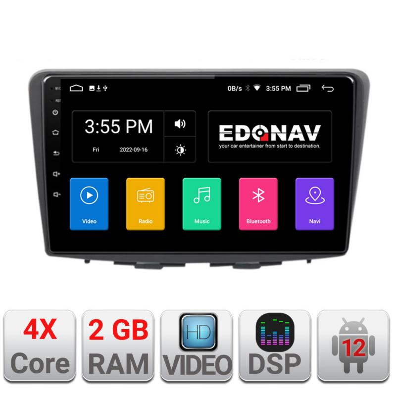 Cu sistem de operare Android 12, procesor 4xCore, Bluetooth încorporat, intrare USB, memorie internă 2GB, ecran tactil capacitiv, radio cu RDS, control comenzi volan, GPS și DSP integrate