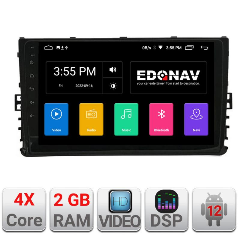 Cu sistem de operare Android 12, procesor 4xCore, Bluetooth încorporat, intrare USB, memorie internă 2GB, ecran tactil capacitiv, radio cu RDS, control comenzi volan, GPS și DSP integrate