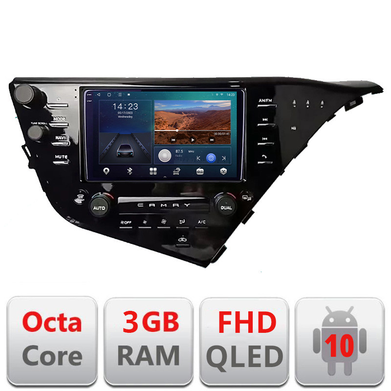 Navigatie dedicata Toyota Camry 2017-2021 V2 Android Ecran QLED octa core 3+32 carplay android auto kit-camry-2018-plus+EDT-E309V3