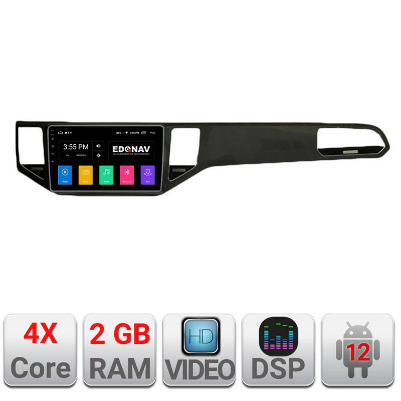 Cu sistem de operare Android 12, procesor 4xCore, Bluetooth încorporat, intrare USB, memorie internă 2GB, ecran tactil capacitiv, radio cu RDS, control comenzi volan, GPS și DSP integrate
