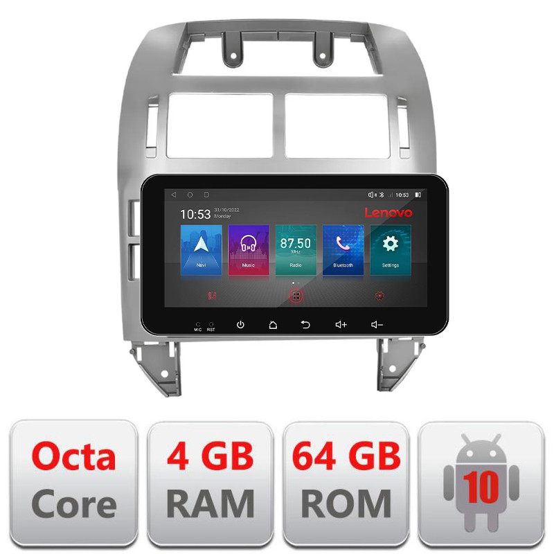 Specificatii Navigatie dedicata VW Polo 2004-2011 Android radio gps internet Lenovo Octa Core 4+64 LTE ecran de 10.33′ wide Kit-polo+EDT-E511-PRO