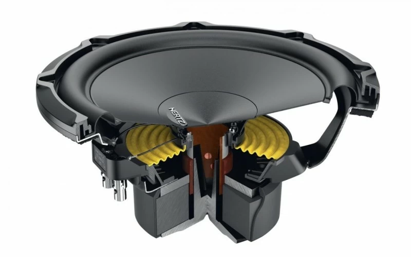 Noul subwoofer CS 250 s2 Cento este îmbunatatirea perfecta a fiecarui sistem de sunet, pentru a va bucura pe deplin de experienta autentica Hertz Sound! Echipa de cercetare si dezvoltare, mereu în fruntea cautarii de solutii inovatoare, cu efort de nereusit, a reusit sa obtina frecvente de bas foarte puternice din carcase sigilate ultra-compacte, optimizând toti parametrii electroacustici în functie de setul-tinta: performanta înalta cu cutii începând de la 16 l. pentru modelul CS 250 de 25 cm (10 in.) Configuratia cu o singura bobina 2Ω ofera compatibilitate maxima cu orice tip de amplificare si cu o carcasa care adaposteste mai mult de un subwoofer. Adâncimea redusa, grupa magnetica compacta si lipsa orificiului de decompresie spate permit formarea cutiei în jurul subwooferului obtinând o adâncime apropiata de cea a unui difuzor pentru o libertate maxima de instalare pe orice tip de masina. Sistemul special de racire al bobinei vocale cu sase straturi mentine temperatura de functionare într-un interval optim, chiar si în cazul sesiunilor de ascultare extinse la presiune acustica ridicata. Un sistem inovator de optimizare dinamica a fluidelor si reducere a turbulentei, obtinut datorita suportului de paianjen care actioneaza ca o conducta de aer catre orificiile de evacuare a cosului, reduce drastic distorsiunile acustice generate de compresiunea aerului la excursii mari. Geometria conului, suspensia si paianjenul au fost proiectate utilizând simulari FEM (Metoda elementului finit) pentru a obtine cea mai buna configuratie de performanta care garanteaza controlul si distorsiuni reduse chiar si la excursii mecanice ridicate ale grupului mobil. Blocul terminal utilizeaza conectori push push care accepta cabluri de pâna la 8 AWG pentru a oferi o rezistenta redusa a cablurilor si o usurinta maxima de conectare chiar si în instalatii cu mai multe subwoofere. Subwoofer-ul este, de asemenea, prevazut cu o garnitura eleganta din plastic ABS de înalta rezistenta, care permite fixarea grilei pentru a termina instalarea. Grila optionala CG 250, cu o plasa robusta din metal negru, ofera o protectie totala pentru subwoofer si un aspect atragator datorita logo-ului Hertz din aluminiu cu diamant pentru o mai buna integrare în masina. Cu subwooferele Cento, chiar si cei mai tineri pasionati se vor bucura de o reproducere interesanta a frecventelor joase în masina!